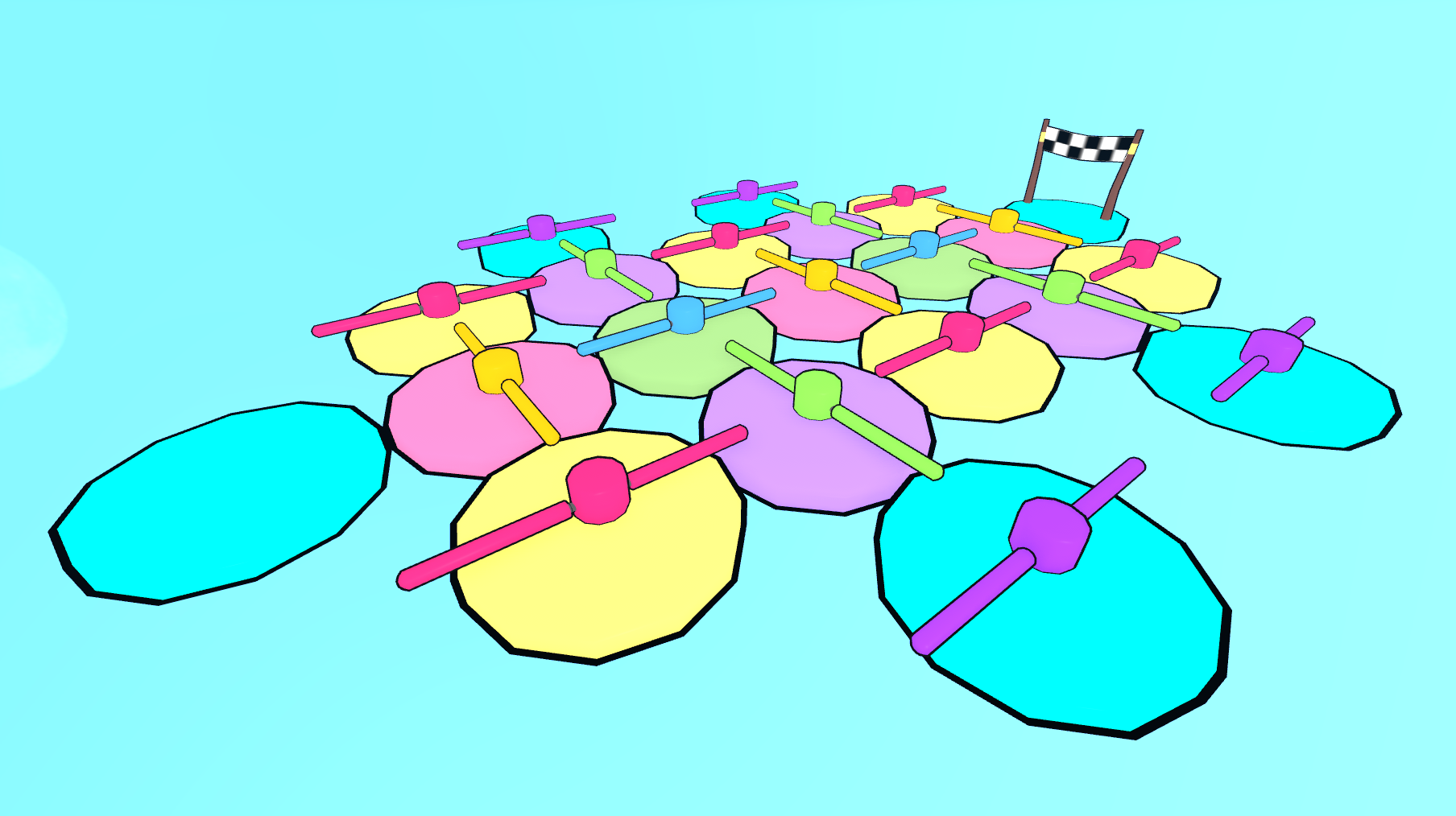 Ontop of managing a team of programmers and artists, I was able to design and even create content for several minigames in the world including races and a 3rd-person-shooter style food fight minigame. Enjoy the gallery of content I was able to contribute below.